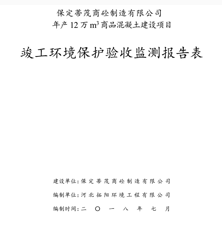 保定蒂茂商砼制造有限公司竣工环境保护...